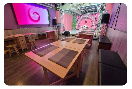 原宿駅徒歩2分にあるパーラースパイラルでは、昼はカフェ、夕方からはアイドルやアーティストなどの様々なイベントを毎日開催しております。