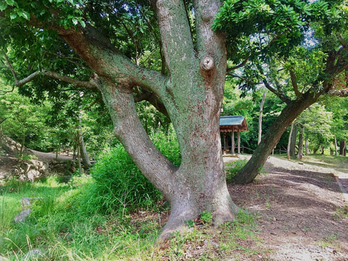 【武蔵蔵の庭園】の東側にある【連理(れんり)のクスノキ】。