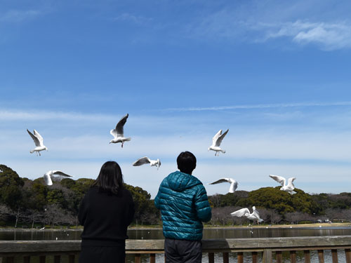 飛んでいるユリカモメに囲まれると、まるで祝福を受けているかのような幸せな気分になることでしょう。
