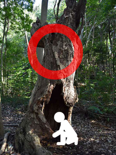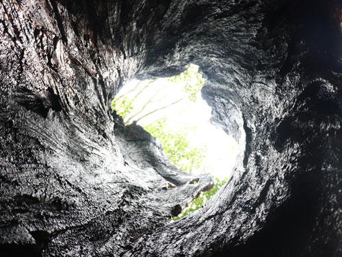 古木外側の切れ目より、覗き上げる姿勢にてご覧ください。