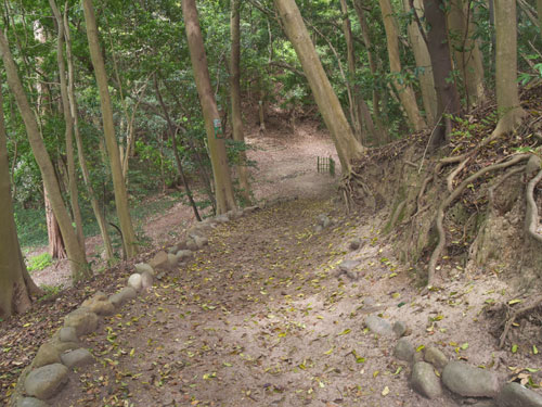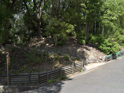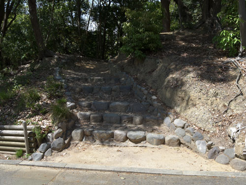 巽櫓へと昇る東側階段の中腹付近、石垣とは逆の海側の足元にあります。