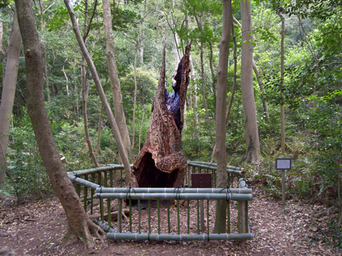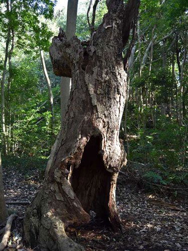 高さ約3mにも及ぶ、空洞化したヤマモモの古木。