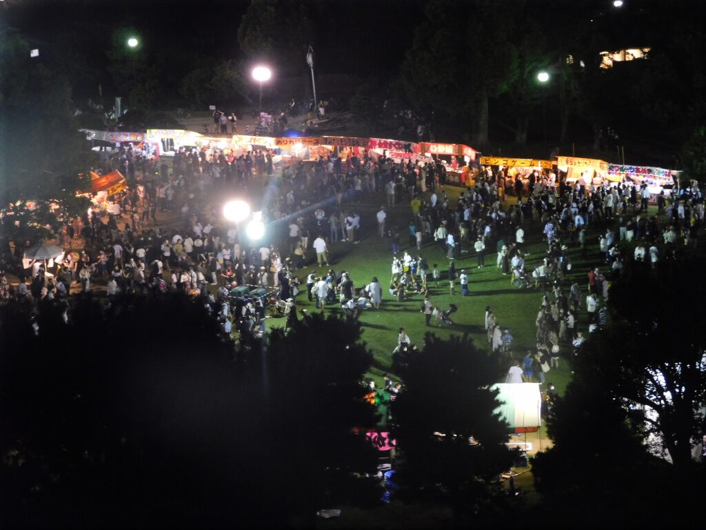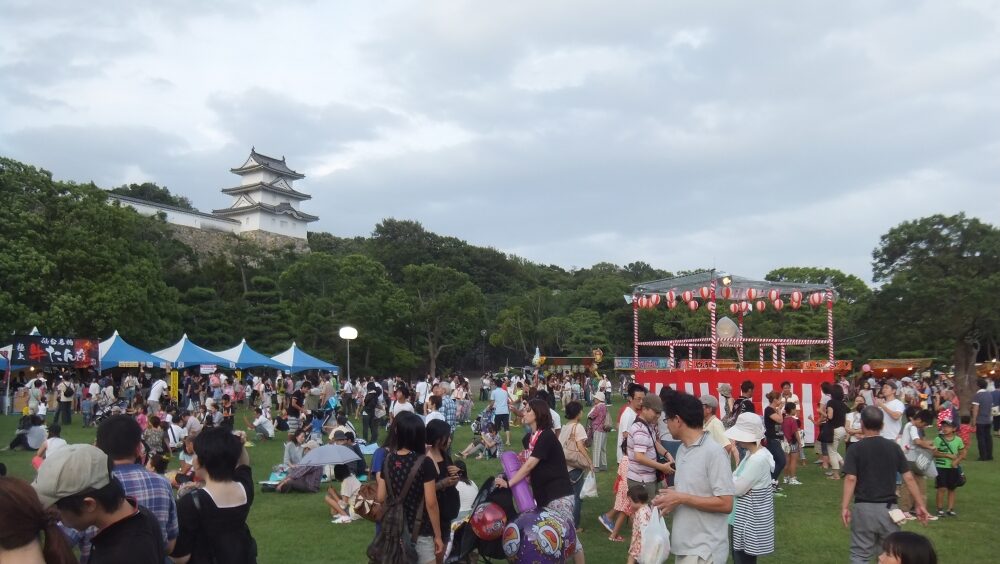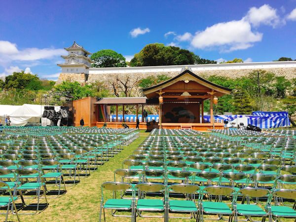 お城と城壁がきれいに映える広場は遠方からも足を運びたくなる情景です。明石駅から近い場所にあり新幹線からでもアクセスが良いため、納涼フィスティバルや冬の食三昧市などフェイスティバルやお祭りのメイン会場となることが多いです。