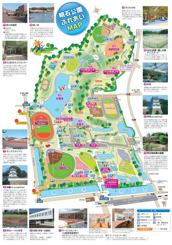 🏪近くのお店 公園内に売店はあります。日用品をお求めでしたら、明石駅前にショッピングモールやコンビニエンスストアがあります。