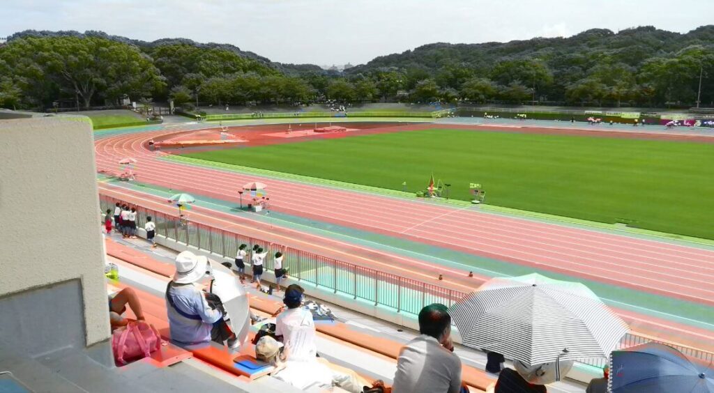 走路1周400m(全天候型)、観覧席約20,000人収容(スタンド約6,000人収容)、その他温水シャワー、放送設備等(日本陸上競技連盟第三種公認)
