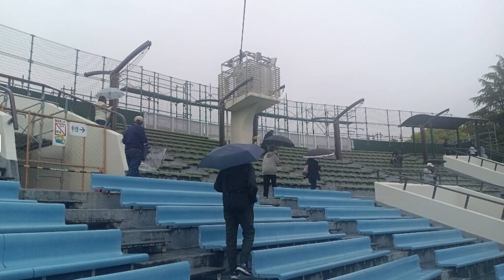 座席番号は特になく、空いているベンチに腰かけて観戦するイメージです。