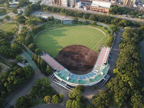 センター(122m)、両翼(100m)、観覧席12,000人収容(スタンド約4,300人収容)、その他温水シャワー、放送設備、スコアボード等