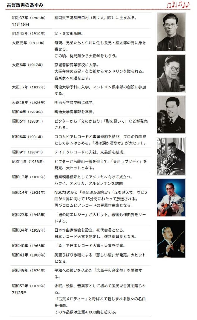 古賀政男氏は明治37年福岡県田口村(現在の大川市)に生まれる。