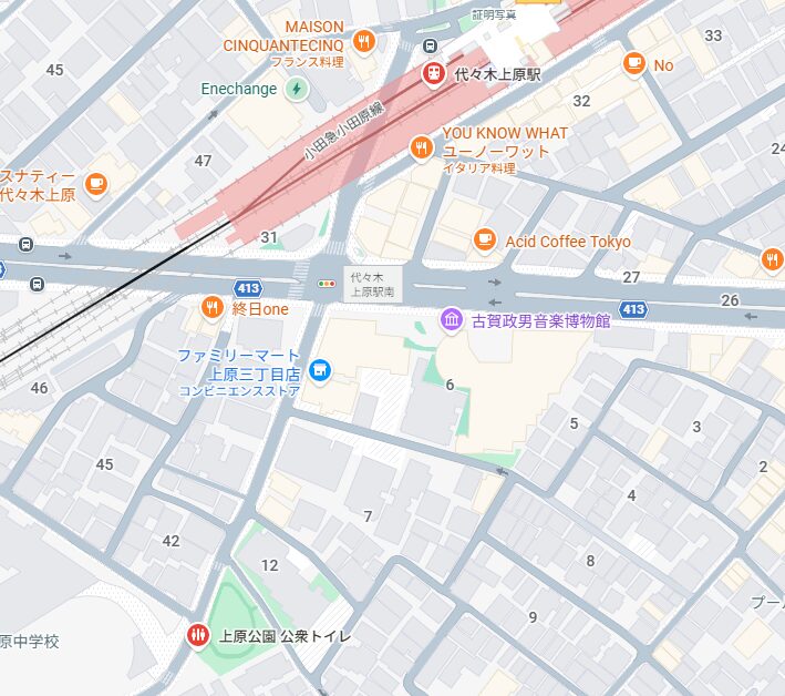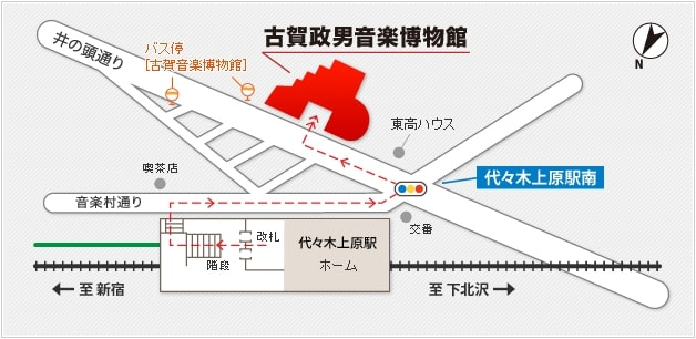 - 京王バス 笹塚循環(渋谷~笹塚) 古賀音楽博物館下車 徒歩1分