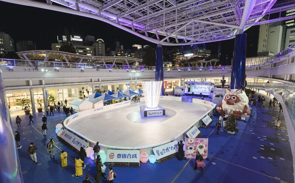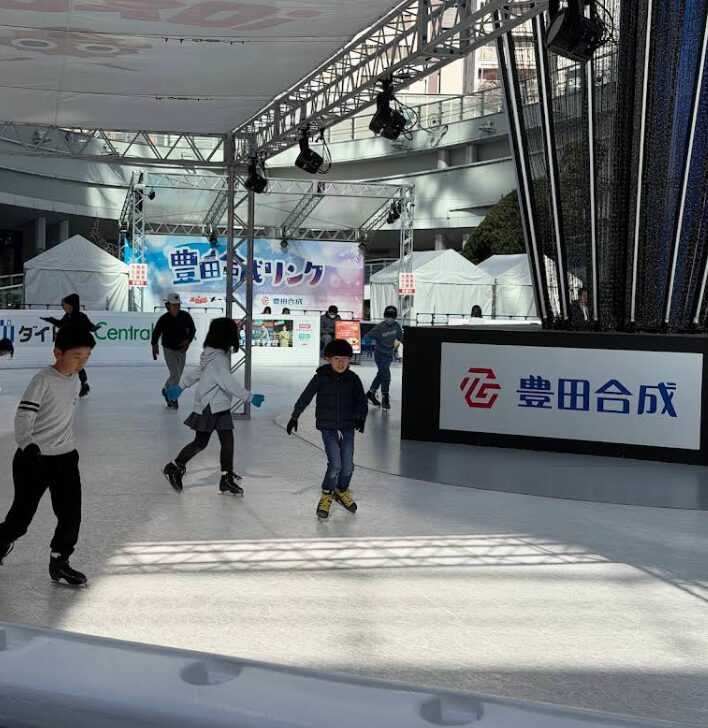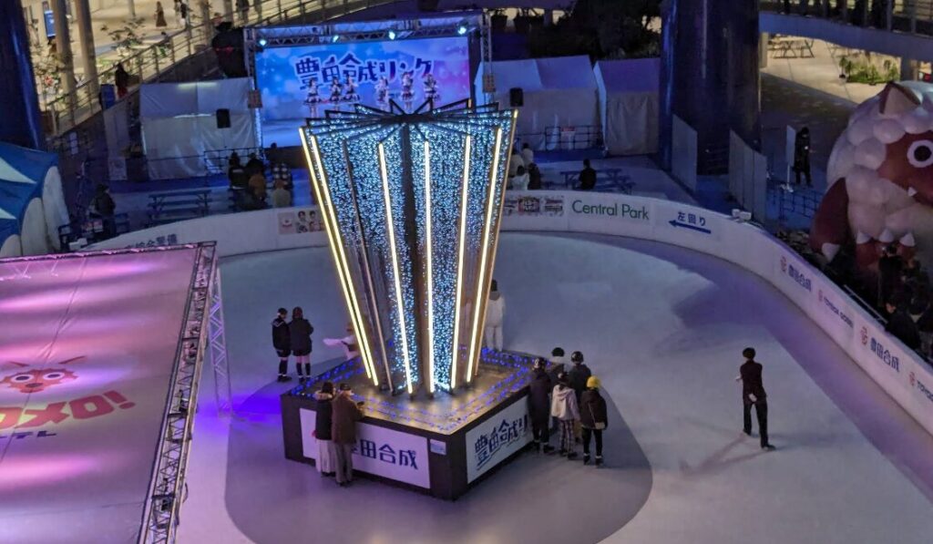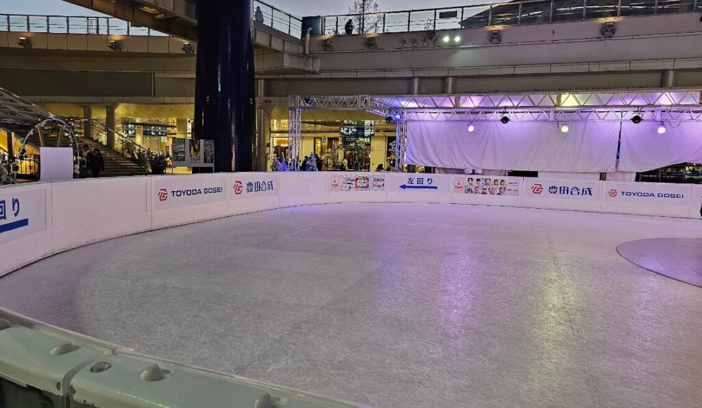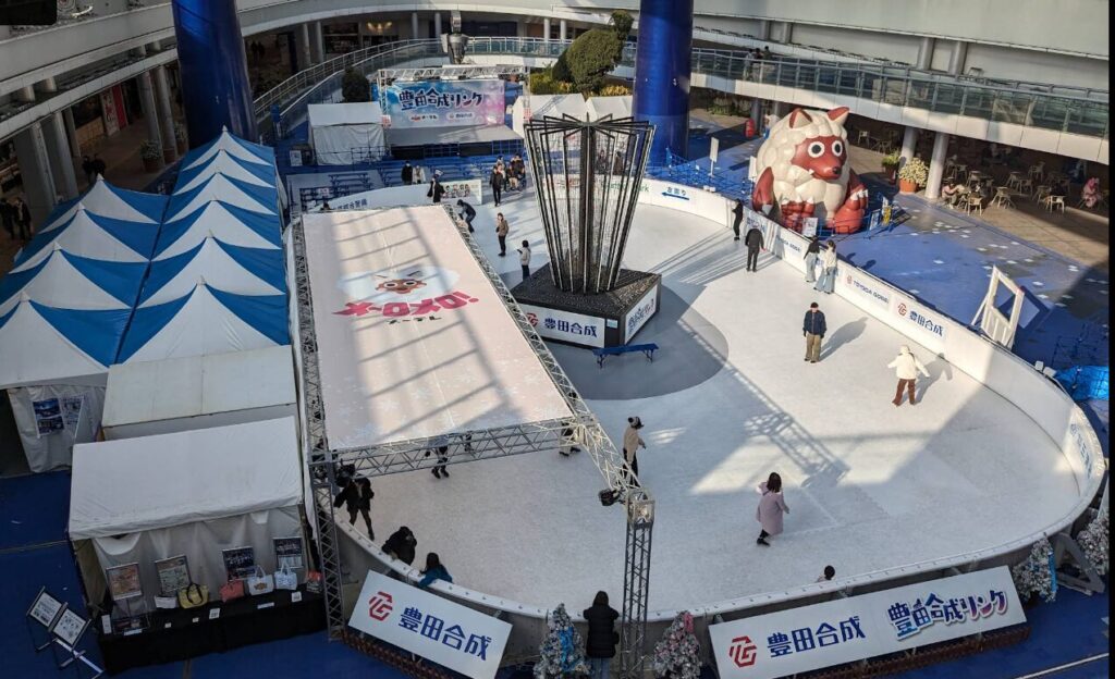 豊田合成リンク(読み方:とよだごうせいりんく)は、愛知県名古屋市のオアシス21にあるスケートリンクです。一般のアイススケートリンクと違って、氷ではなく特殊加工したプラスチック・パネルにシリコン・ワックスを吹きつけて滑らかに滑れるようにしています。プラスチックに硬いワックスが塗ってある感じでした。気化性のものですので、転んでも心配はありません。アイススケート目的で行くような所ではないと感じました。靴は借りれますが、サイズは1cm刻みで、靴ズレや足の疲労は凄いです。