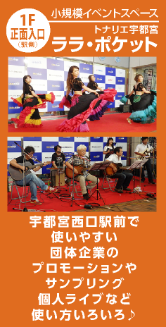 tonarie UTSUNOMIYA(読み方:となりえ うつのみや)は、栃木県の餃子のまち宇都宮駅前にあるショッピングモールビルです。東北新幹線 宇都宮駅から徒歩1分とアクセスが最高なため、1階のララポケットや11階のララステージでは音楽イベントが行われることもよくあります。