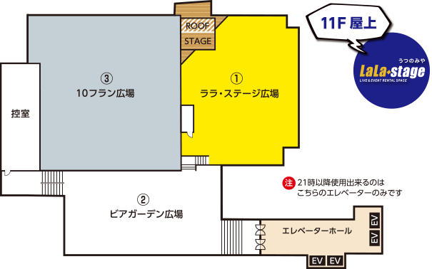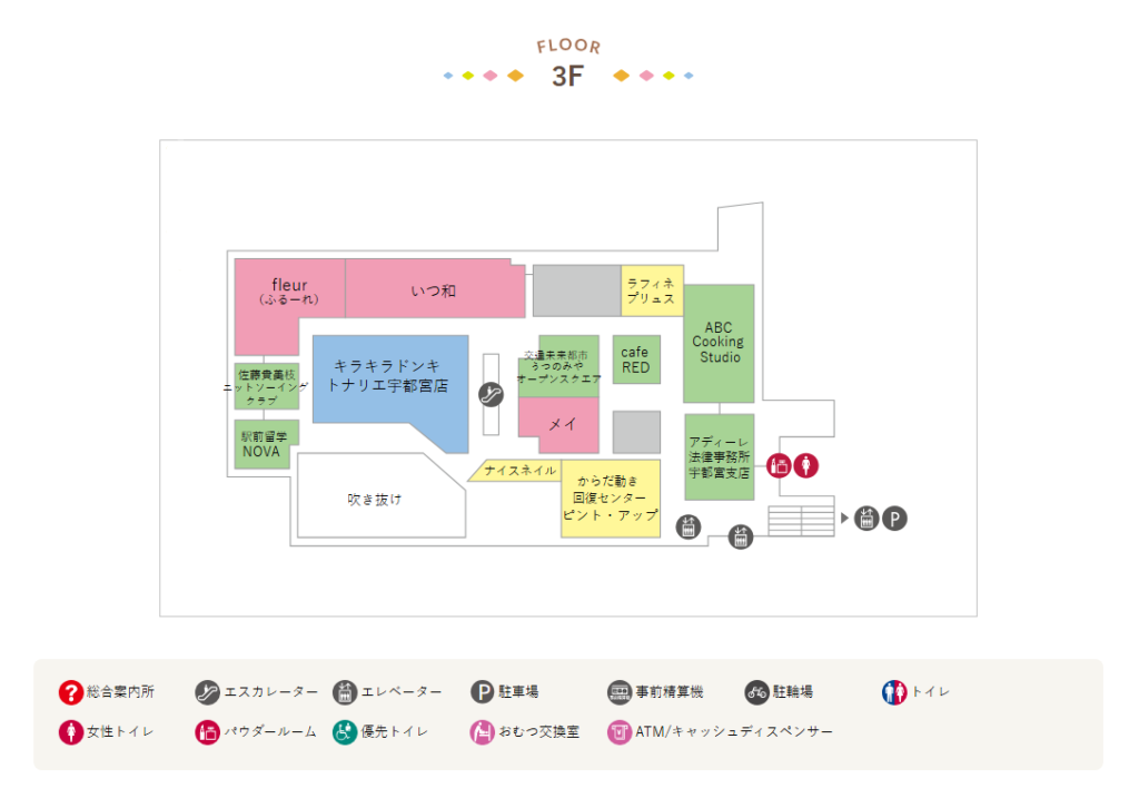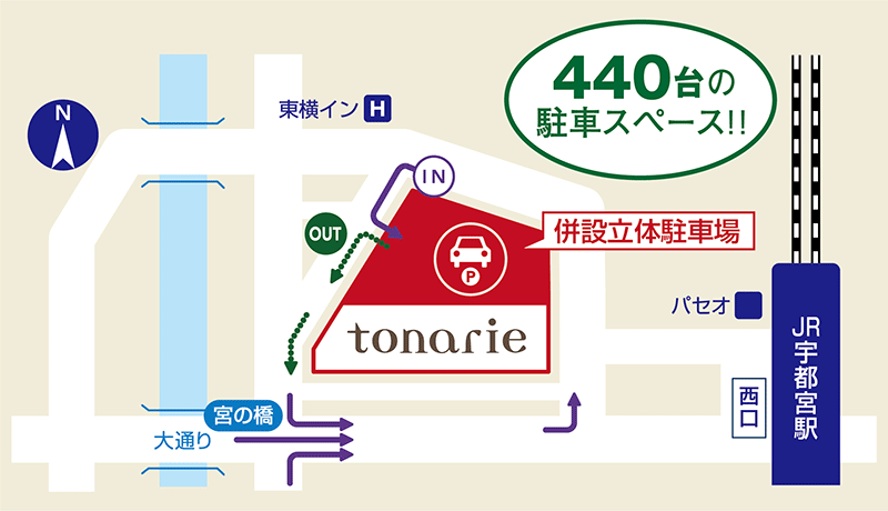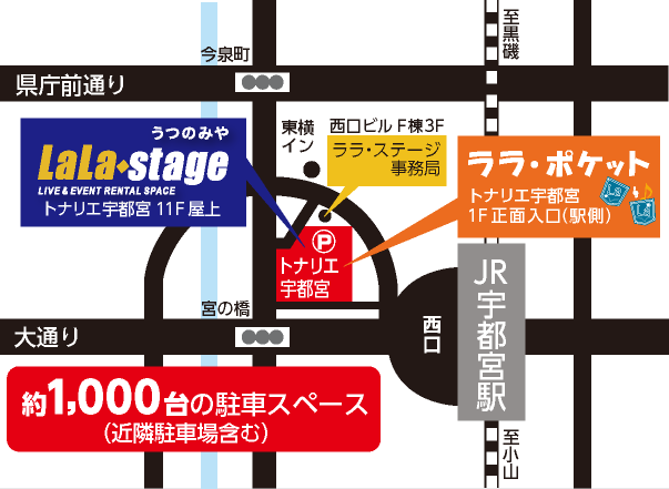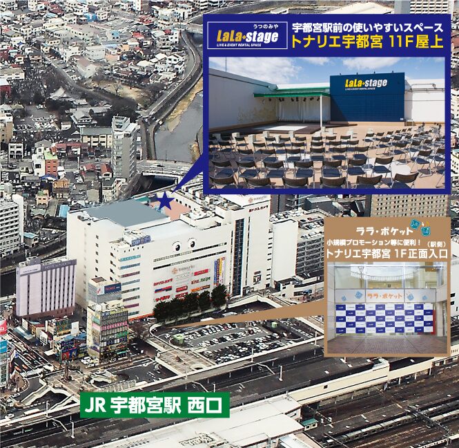〒321-0964栃木県宇都宮市駅前通り1-4-6 トナリエ宇都宮 11F屋上・1F駅側