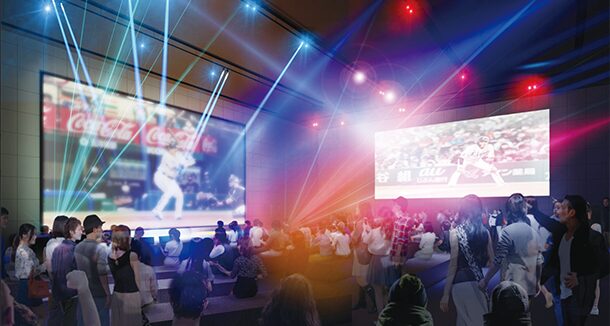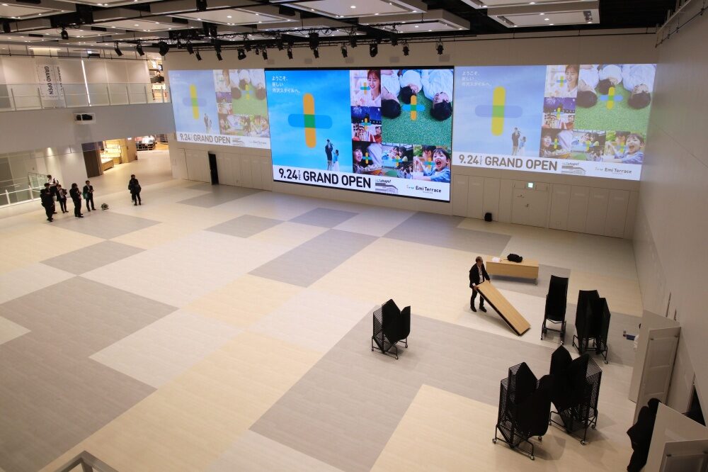 施設中央に位置する吹き抜け空間のTOKOROZAWA e-CUBEでは、集う、交流する、体験する、自分時間を過ごす、さまざまな方に多様なご利用シーンを提供いたします。スポーツイベント、e-スポーツイベント、音楽ライブやライオンズ戦パブリックビューイング、地域交流などのさまざまなイベントを開催するほか、イベントのない時はテーブルや椅子を配置して憩いの場として開放します。国内の商業施設では最大級の大型ビジョンやプロジェクターを活用したインタラクティブデジタルコンテンツをはじめ、館内情報、環境映像やCMを映すなど、集いの場、交流の場、体験の場を提供します。