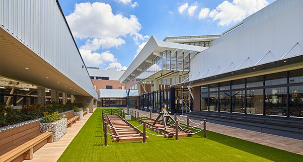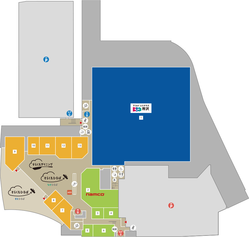 屋上庭園として、明るく開放的な芝生広場やベンチなどを多数配置した屋外広場です。地域や駅利用者の皆さまの憩いの場としてリラックスした時間・場所を提供します。休憩、読書、お子さまの遊び場など自由に過ごすことが可能です。鉄道モニュメント(レールやマクラギ、電車の車止めなど西武線で実際に使われていたもの)が展示され、屋外空間を活かしたイベントも開催しています。