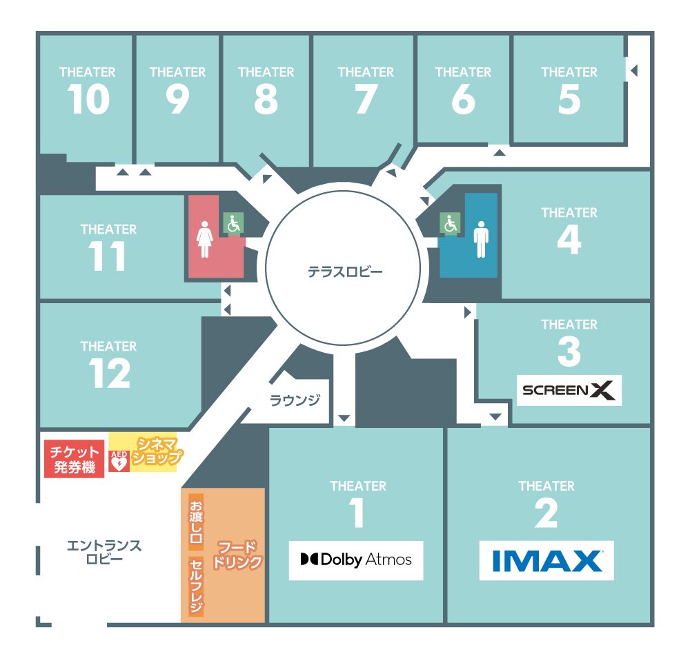 IMAX・ScreenX ・Dolby Atmosを完備し、6種類のスペシャルシートやくつろぎと華やかさを併せ持つロビー空間は全ての人がストレスフリーにご利用いただけます。