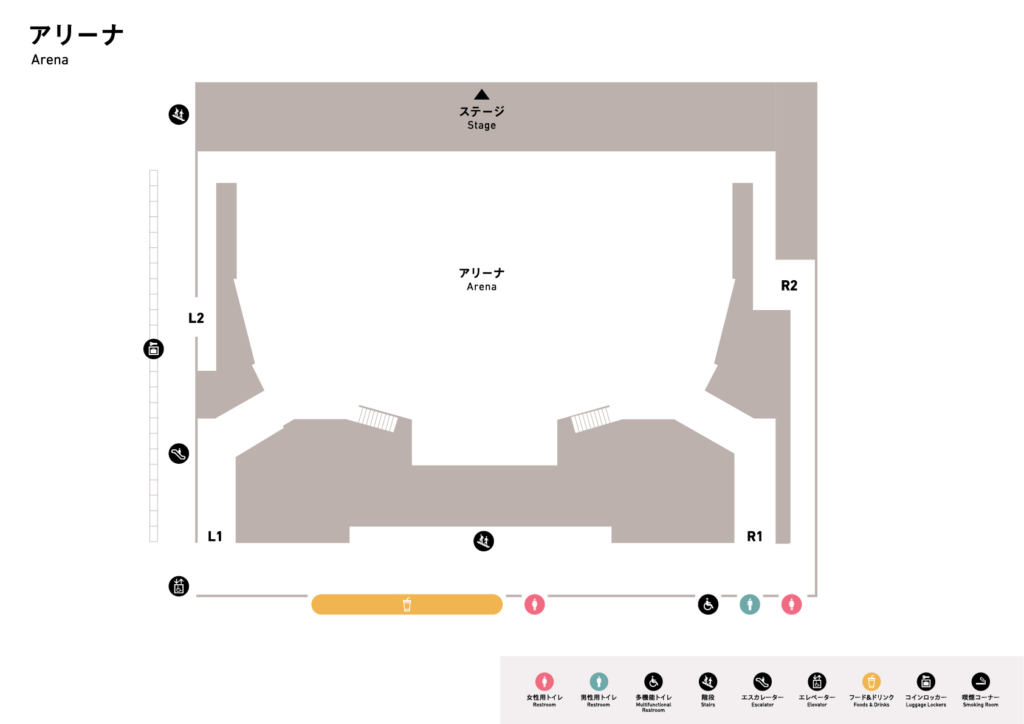 アリーナ座席表 1列目は撤去される場合もあります。