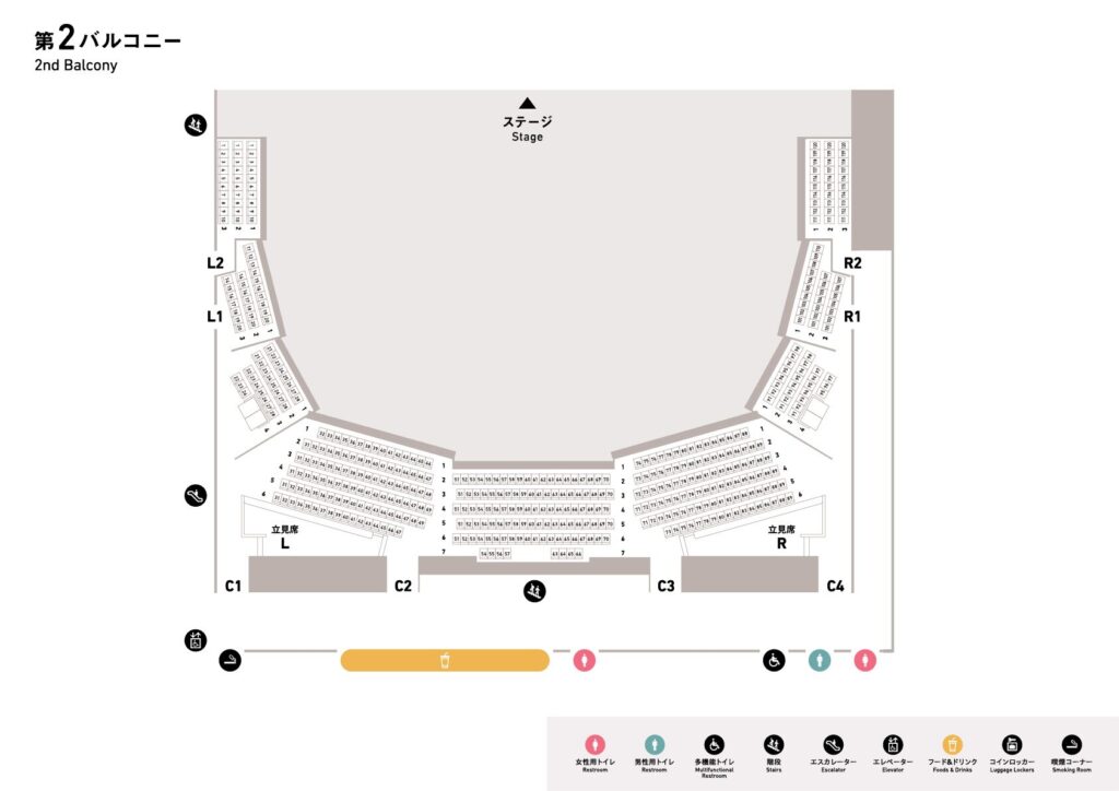 バルコニー席は座席間もスペースがあり窮屈に感じず、道が広く歩きやすいです。遠くても良ければバルコニー席は見やすいレイアウトになっています。