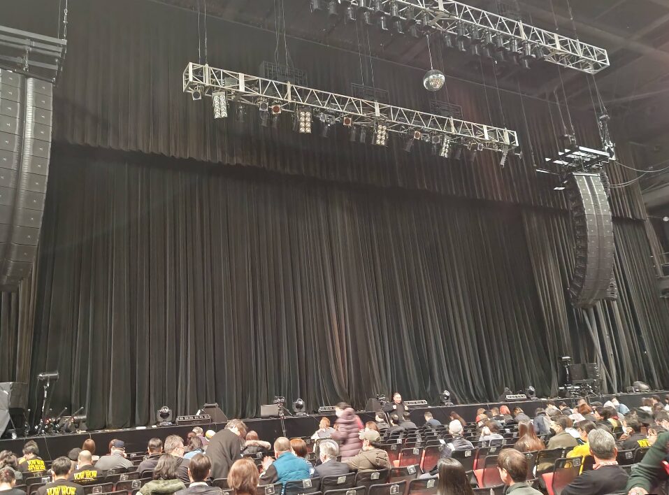 アリーナ席はオールスタンディングにも対応できるフラットなので、前の席に背の高い方がいると見えづらいです。パイプ椅子ではなくクッションは無い、はねあげ式の構造で多少の手荷物、上着は椅子下に置けます。 椅子の横幅もまあまあ大きく、座り心地は良いです。 ただ横の並びはパイプで固定なので真ん中の席は途中出たい時は大変かも。