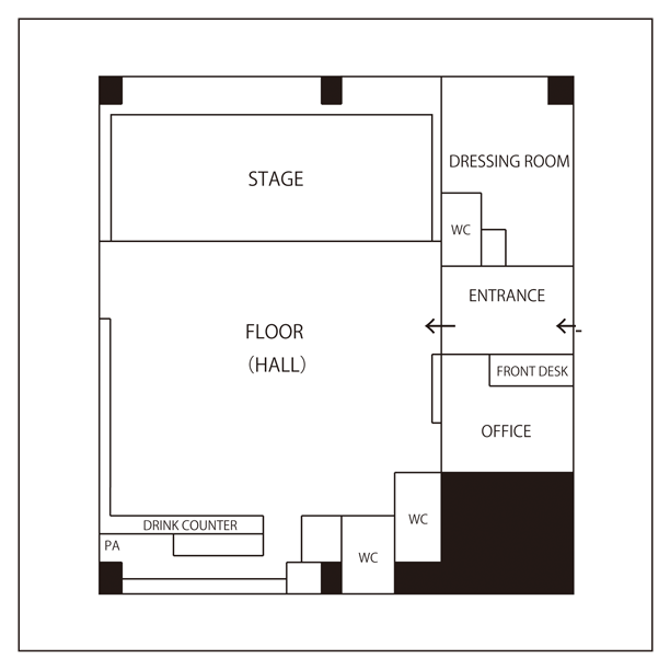 フロアとステージの距離が近く見やすいライブハウスです。狭い空間でしたが、それだけ舞台にも近く演者の顔もよく見えたので私は好きです。 狭いと空気も悪くなり気分が悪くなりやすいのですが、空調もしっかりしており涼しく快適でした。
