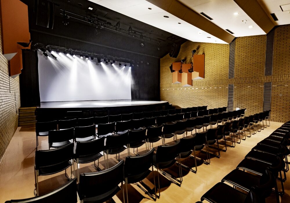 山王ヒルズホールは演劇・ダンス・音楽LIVEなど様々なイベント・公演に対応した最大230人を収容できる日本芸術専門学校自慢のホールです。