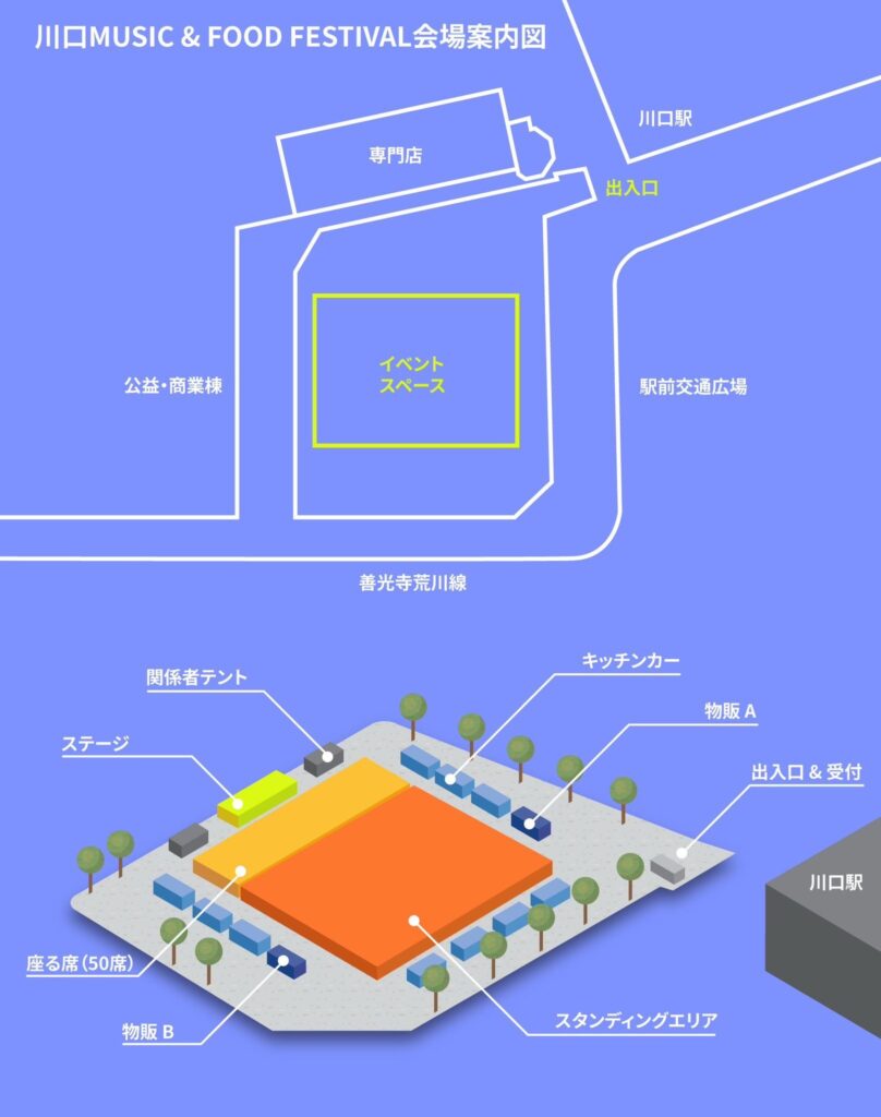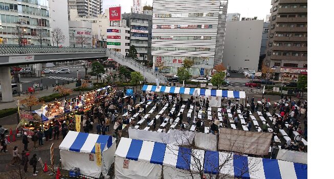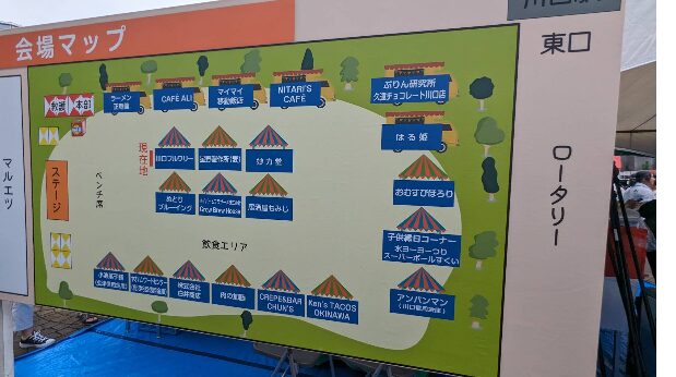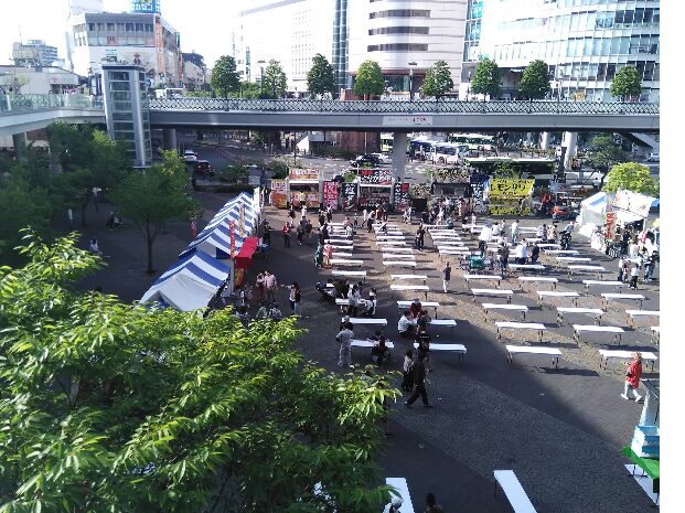 仮設イス、ベンチ、立食テーブルなど開催によってレイアウトは異なります。