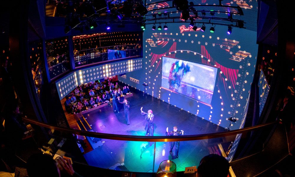 なんといっても『座・グラン東京』の魅力は、お食事やお酒を楽しみながら、中央に設置された大型LEDビジョンに囲まれたステージで様々なエンターテインメントショーのライブ体験です。