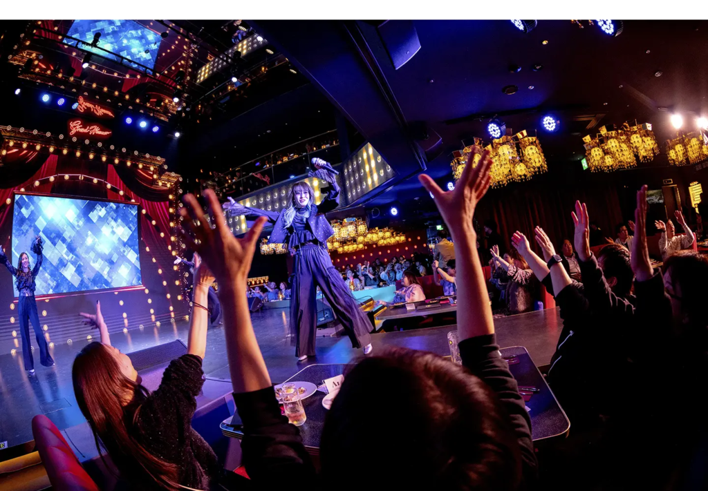 ステージとの距離が近く臨場感たっぷりのショーではアーティストやパフォーマー、イリュージョニストから、昭和歌謡や日本伝統芸能、格闘技まで、様々なエンターテインメントが繰り広げられます。