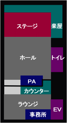 エレベーターで5階へ上がれます。映画館みたいな受付と飲食カウンターが珍しく懐かしい感じがしました。お酒美味しいです。ライブ会場もゆったりしてて居心地よし。音響も良かったです。狭い分ステージが近くて、観やすかったです。