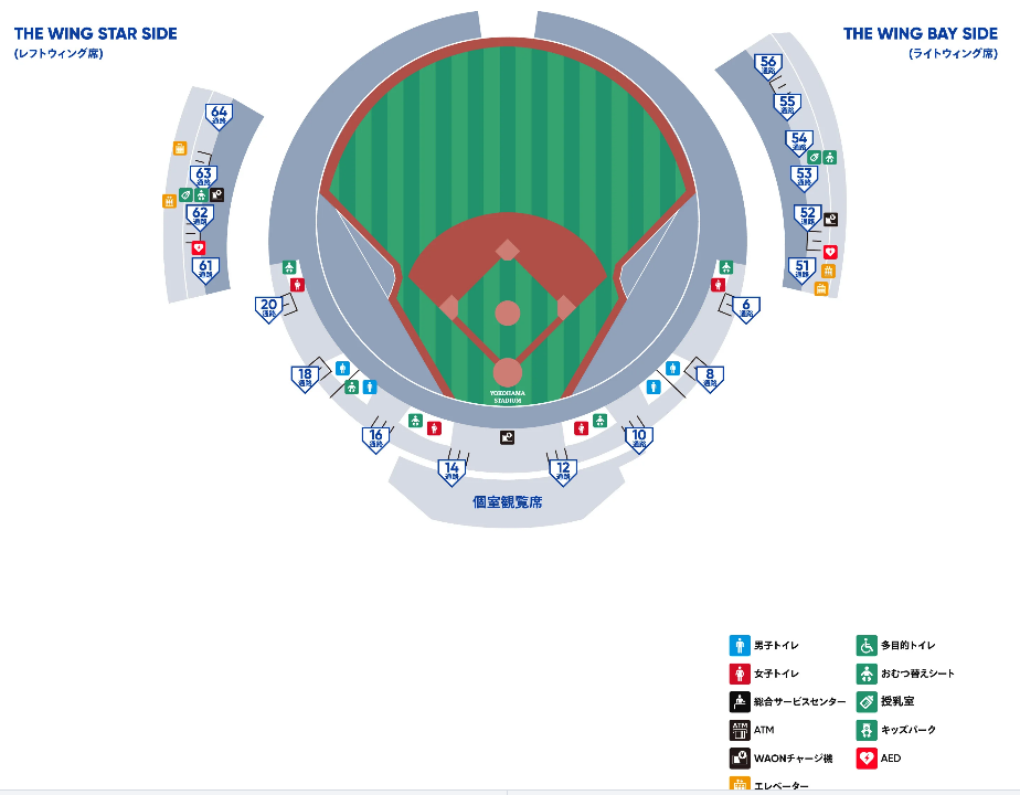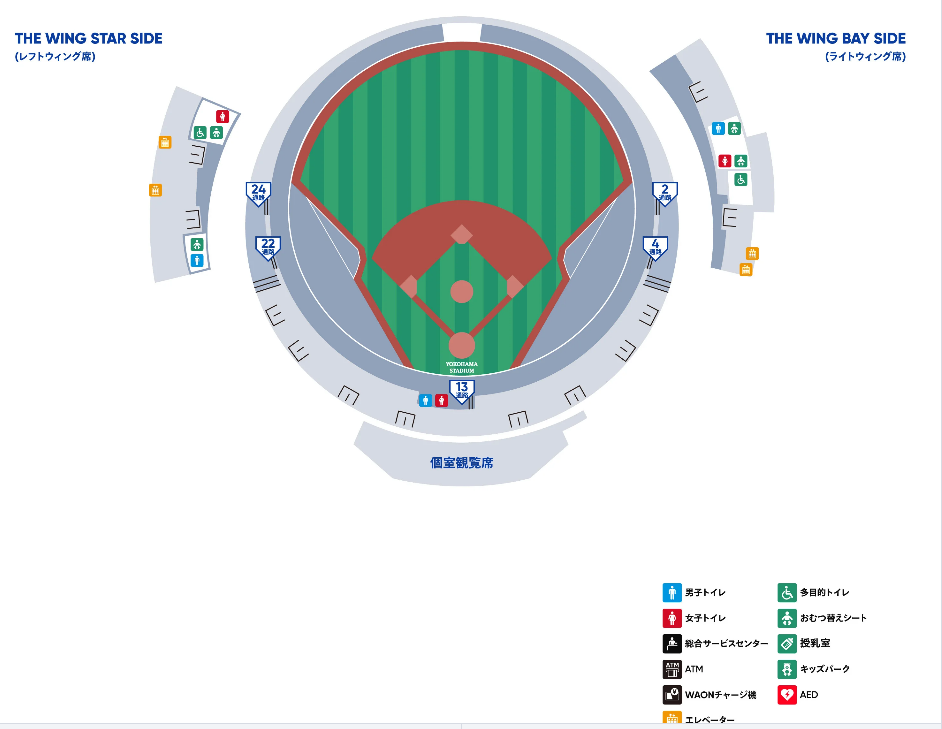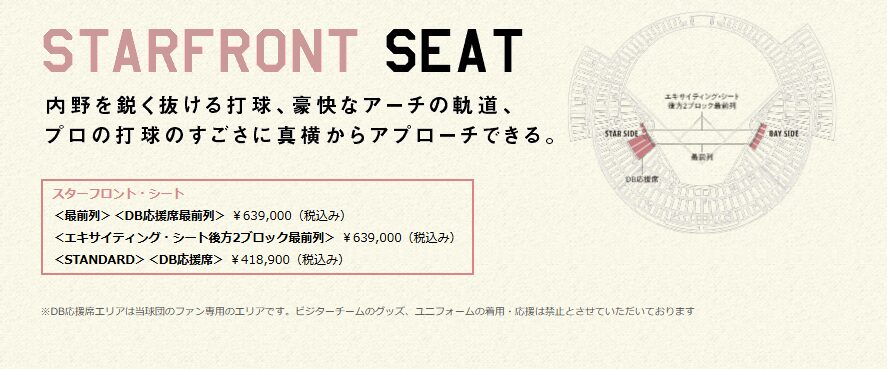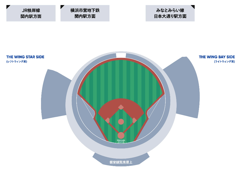 • チーム専用の応援席(例.ホーム応援内野席、ホーム外野席、ビジター外野席など)を除き、ホーム・ビジターどちらのチームの応援も可能です。