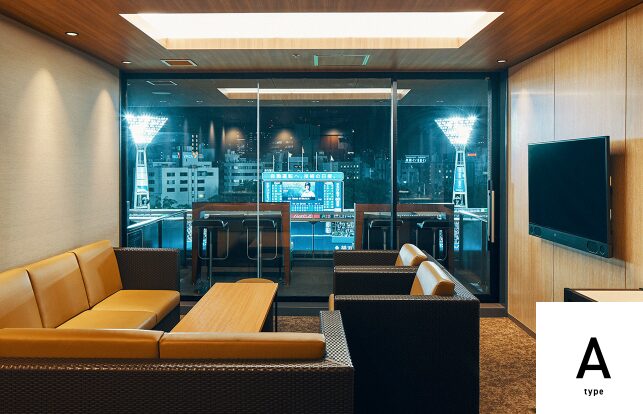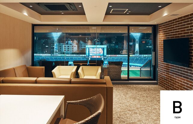 NISSAN STAR SUITES は全室、グラウンドを一望できるバックネット裏スタンド上部に配置しております。室内は、天井まで広がる大開口の窓から、熱戦とともに港町ならではの美しい横浜の夜景が一望できます。専用バルコニーからは、心地よい浜風を感じながら、屋外球場ならではの開放感、球場が一つになる大声援と勝利の歓喜に包まれる一体感を存分にお楽しみいただけます。