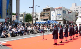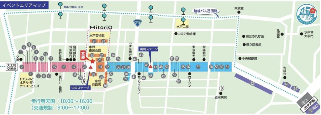 水戸市民会館前の歩道橋付近を歩行者天国にして特設されるステージです。