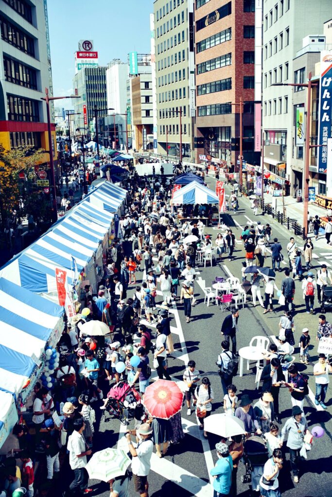 中心市街地のメインストリートである国道50号の大江交差点から水戸中央郵便局までの歩行者天国を中心に、ワークショップ、グルメ、マーケットなどをテーマとした様々な催しを実施する、まちなかのストリート文化祭です。
