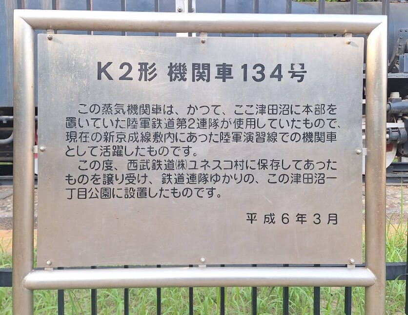 津田沼北1丁目公園(読み方:)は、千葉県習志野市津田沼にある公園です。保存車両 陸軍鉄道連隊 K2 134が展示されていることから、「津田沼SL公園」とも呼ばれて地域住民に親しまれています。津田沼肉バルオータムフェスなどが行われる会場です。