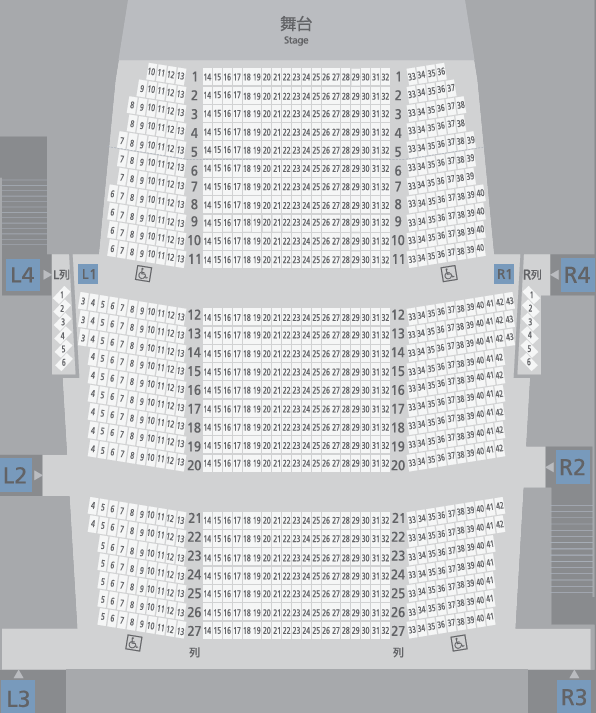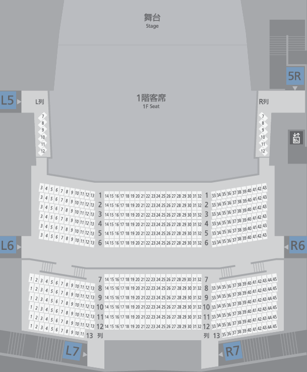 全面利用:定員1,513席(1階977席、2階512席、バルコニー24席)