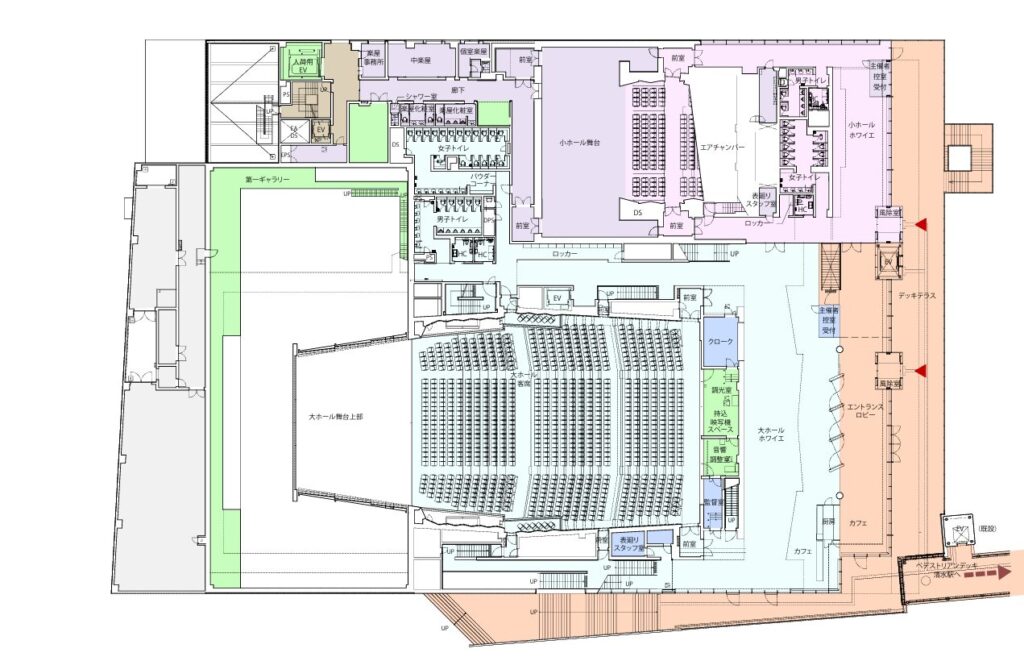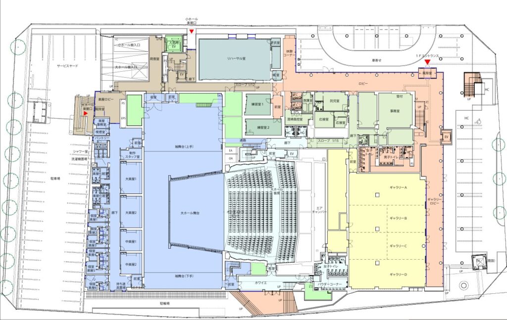 大ホールには2階からの入場でした。ホールはとても舞台が見やすく、とても演者との 距離が近い感じでした。また、新しい施設のせいか、音響も聴きやすくなっていました。座席は、余り着席していなかったのですが、座り心地はまずまずでした。座席は狭く通るのが大変です。1階席で、一桁列、10番代、20番代の席に座ったがどこから見ても、前の人の頭がかぶる事がなく、ストレスなく見ることかができて本当に良かった!コンサート等では2階席より1階席の方が見易いかも知れない。1階17列でもステージから近く感じます。 座席サユウの感覚が狭いです。 また座席と階段の高さが位微妙にズレているので、お年寄りの方は段差に注意していただきたいです。