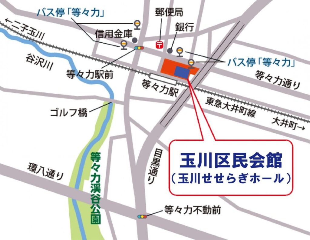 玉川せせらぎホール(読み方:たまがわせせらぎほーる)は、玉川区民会館ホール(読み方:たまがわくみんかいかんほーる)の別称です。東京都世田谷区の等々力(読み方:とどろき)駅前にある世田谷区役所玉川支所・玉川区民会館のホールです。建物と建物の間の中央空間に、ミストクーラーがあるので、建物利用しなくても涼むことができます。入口は複数あります。