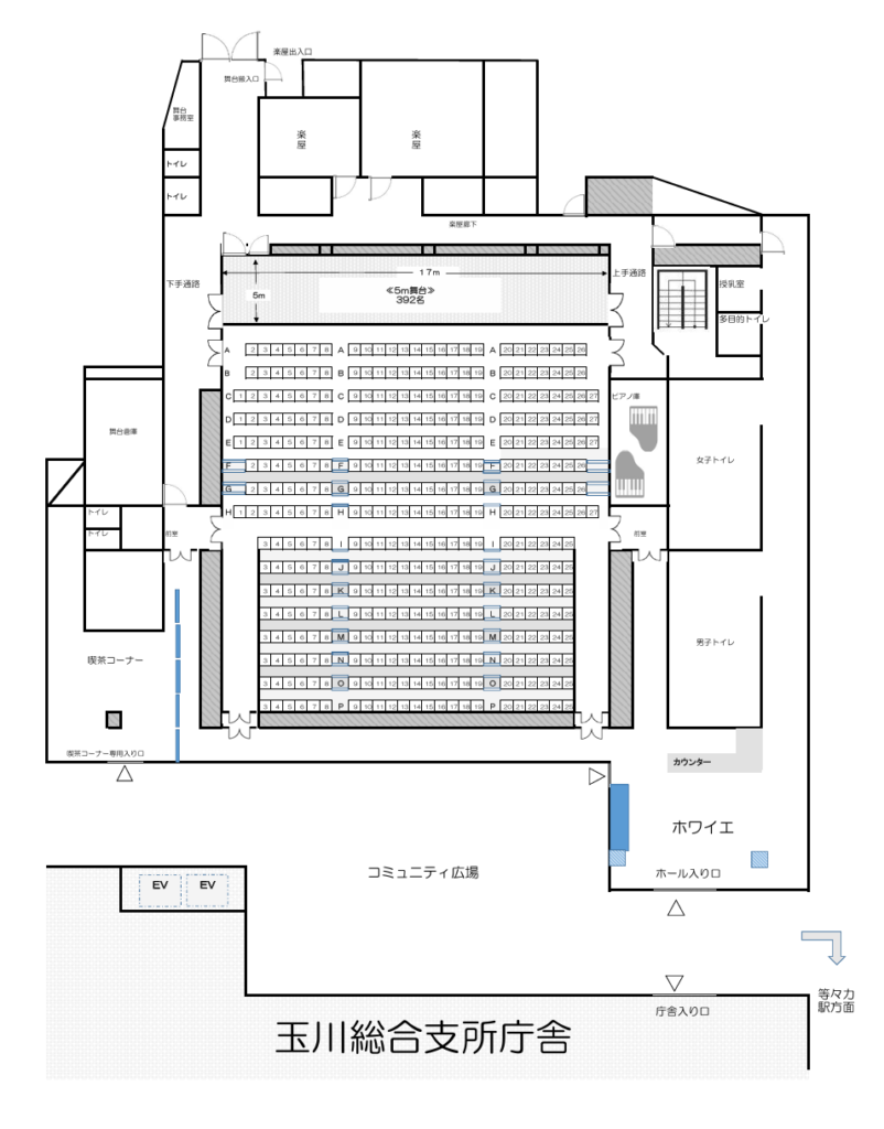 ホールの椅子は簡易パイプ椅子のため、隣との金具が外れやすく、体重をかけると危ないです。会場内の階段も高さや幅が均一ではないため、暗転中に移動すると転ぶやすいです。お年寄りにはお勧めできない会場です。