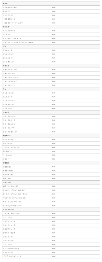ドリンクチケットが、ソフトドリンクなら2杯飲め、お得感がありました。