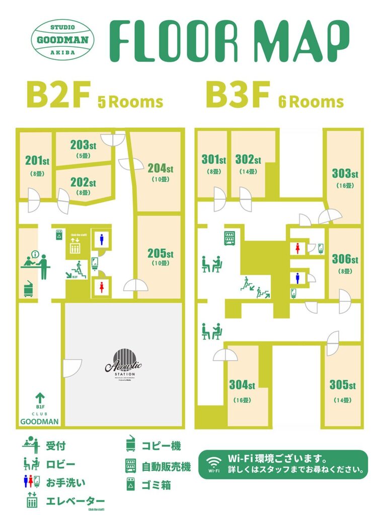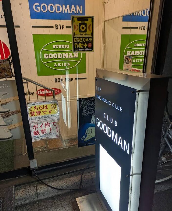 秋葉原 CLUB GOODMAN(読み方:あきはばら くらぶ ぐっどまん)は、東京都の秋葉原の地下1階にあるライブハウスで、地下2~3階は音楽スタジオ グッドマン アキバになっています。エレベーターあり、車椅子ユーザーも行けます。