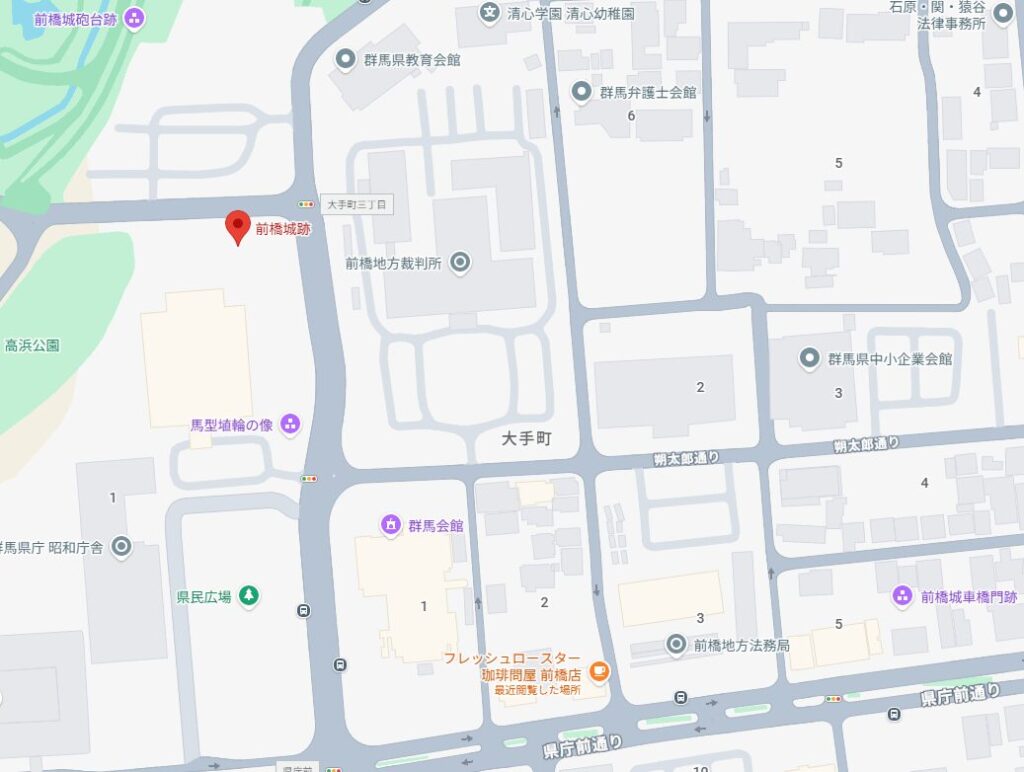 北側は前橋城の跡地だそうです。遺跡の好きな人は、少し早めに到着して散策してみるのも良いかもしれません。