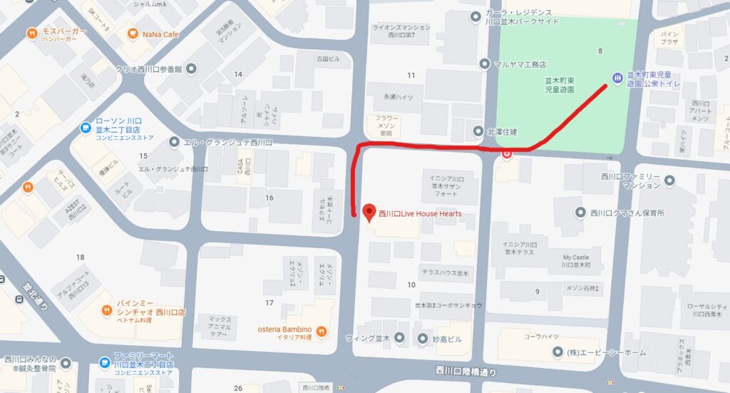 Nishi-Kawaguchi Live House Hearts(読み方:にしかわぐち らいぶはうす はーつ)は、埼玉県西川口の住宅街に中にたたずむ倉庫をカフェに改装したようなライブハウスです。大塚Heartsと同じイーストサウンド系列店です。”西川口”と付けないと大塚のお店と間違えてしまったり、カタカナで”ハーツ”と書くと”西川口”とくっ付けたときに西川”ロハーツ”かと思われてしまうので注意が必要です。