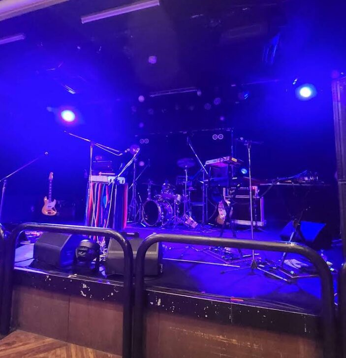 ステージが高いため後方からでも視界が良好で、天井も高く、圧迫感のない快適な空間が広がっていました。フロアの中央あたりに位置していましたが、激しい音楽性のライブでありながらも音響は非常に聴きやすく、心地よい環境でした。