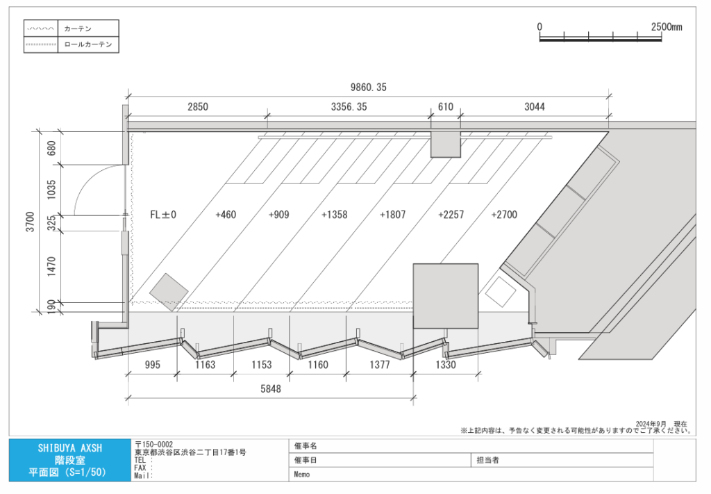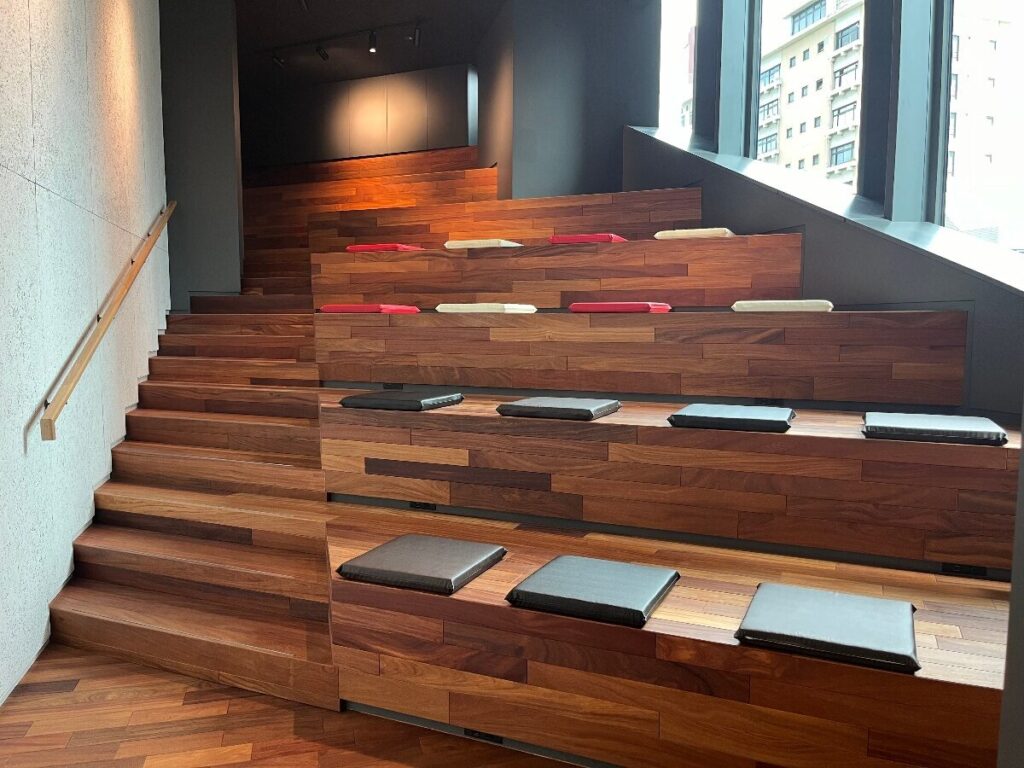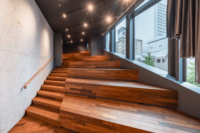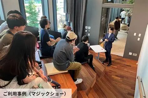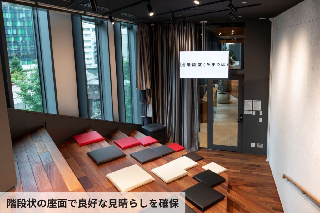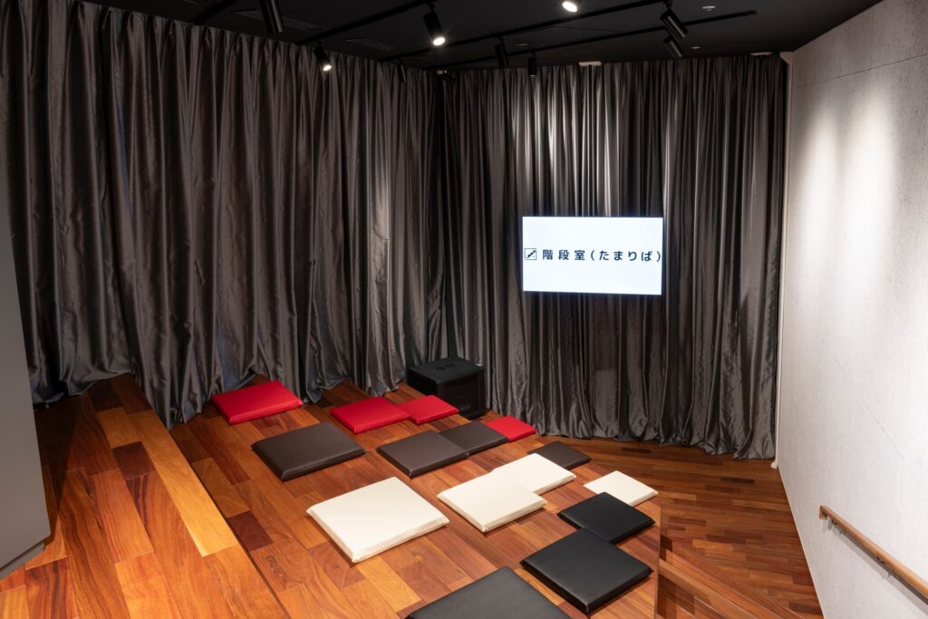 階段室(読み方:たまりば)は、東京都のSHIBUYA AXSHの3階に位置する約35㎡の階段型のユニークスペースとして、60インチモニターを完備し、会議、セミナーはもちろん展示会やポップアップストア、PRイベントなど幅広い用途でどなたでもお申し込みの上、ご利用可能です。