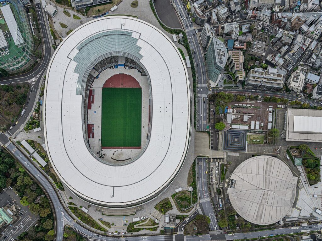 このスタジアムは、東京オリンピックのメインスタジアムとしての役割を担い、最大収容人数は約68,000人です。デザインは伝統的な日本の美を取り入れており、屋根の部分には木材が使用されています。外観は、周囲の自然環境との調和を図った造りになっており、観客席からは選手たちのパフォーマンスを間近で楽しむことができます。