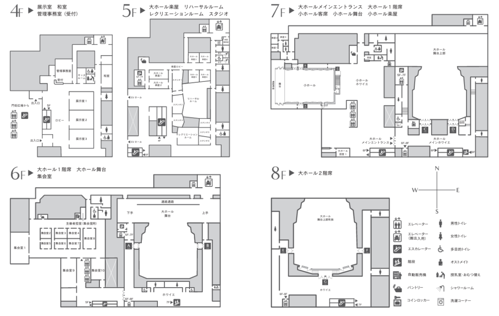 大ホール、小ホール、会議室、展示室、スタジオ、和室を備え、コンサートや演劇、各種イベント会場などに広く利用できます。