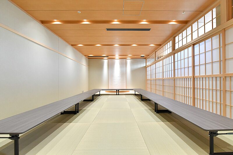 華道・茶道・香道や囲碁・将棋等で利用ができます。座卓及び座布団があり、集会や茶話会で利用できます。茶道具も貸出しております。