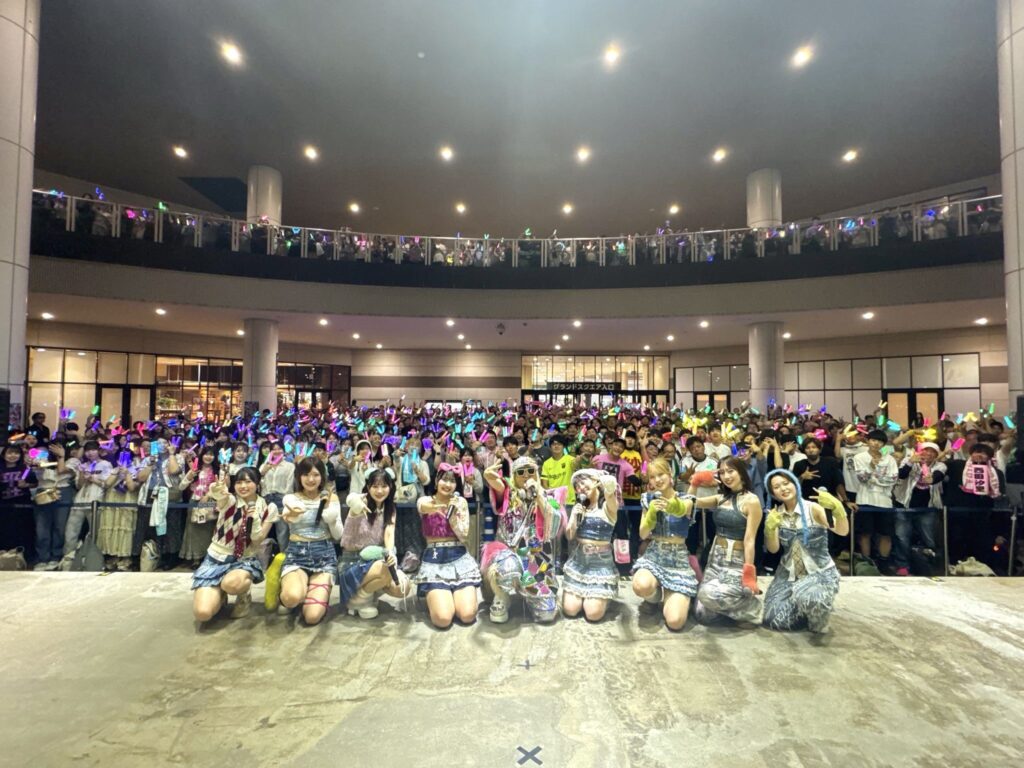 ダイキサウンド主催のIDOL LIVEは1階屋外グランドスクエアで行われ、予約無しでも観覧スペース外(1階後方/2階は無料)から無料観覧できます。無料エリアを撤去するほど混んでる事はまだ見たことがありませんが、日曜日ともなれば割と混んだ状態になります。無料エリアが撤去された場合は、2階からの観覧になります。1階の後方は日差しがまぶしく、柱の日陰のほうがよく見えます。後方で見るなら帽子を持って行ったほうが良いです。