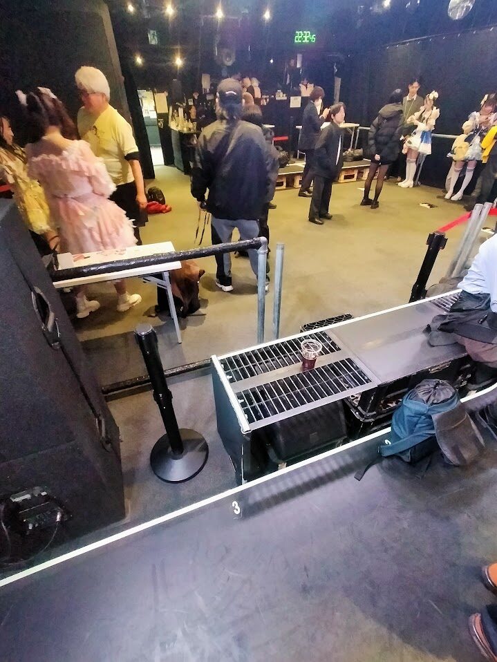 ステージ上物販中なのでわかりにくいですが、ステージ最前部もお立ち台になっており、最後方の見にくさも解消されています。お立ち台が無い部分のステージにはあまり高さがありません。