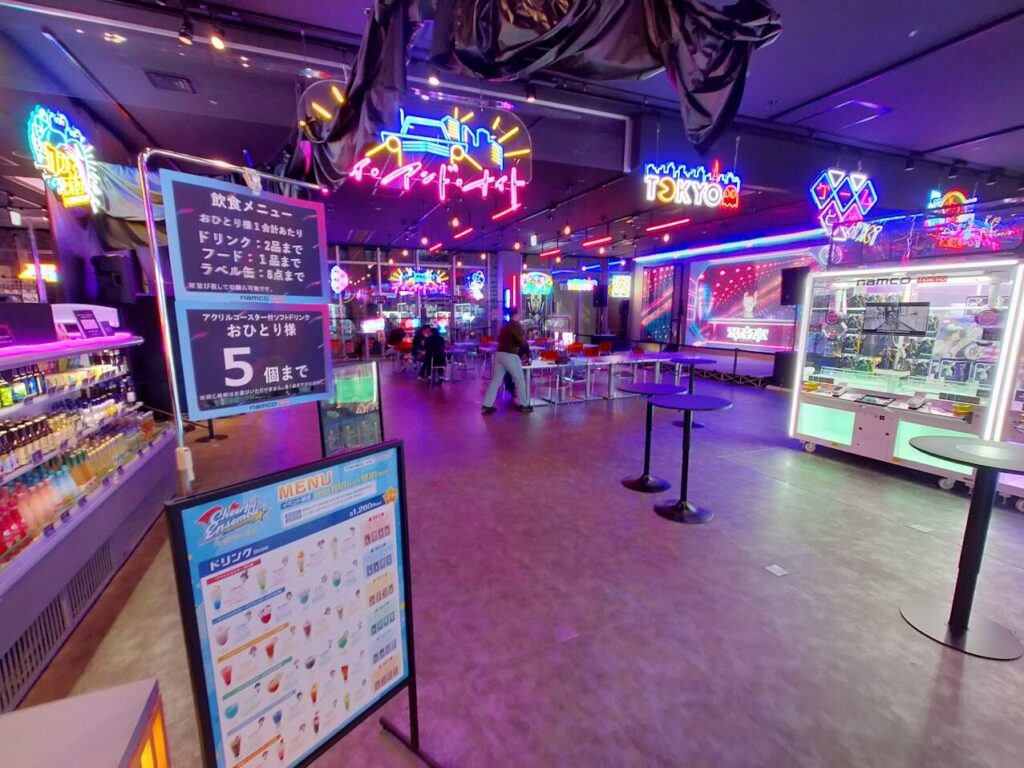カタカナで書く場合に東京の部分は『トーキョー』と書きます。飲食スペースのあるナムコのゲームセンターで、ステージライブ開催時のイベントスペースは、入場ドリンク代でオリジナルラベル缶以外のお好きな飲み物と交換できます。吹き抜けから2階のファーストステージが見下ろせます。