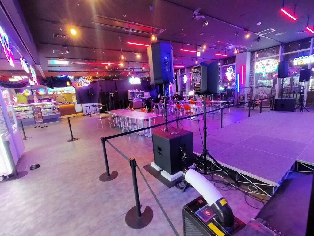ジム・サウナ&レストランのX PLACE(エックスプレイス)に設置されるステージです。屋外テラスにはプールもあります。アミューズメントカジノ、プライベートサウナ、レストラン、プールテラスバー、放水ライブなど、用途やシーンに合わせた柔軟なご利用が可能です。